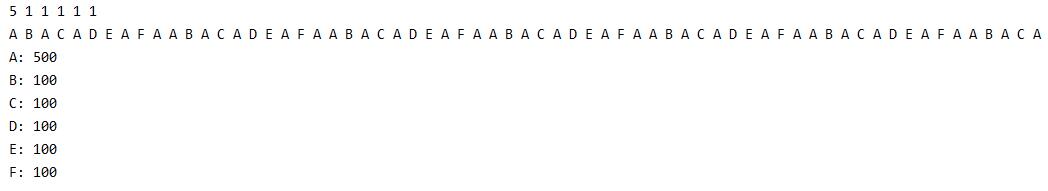 fmt.Printf("%s: %d\n",string('A'+i),count[i])