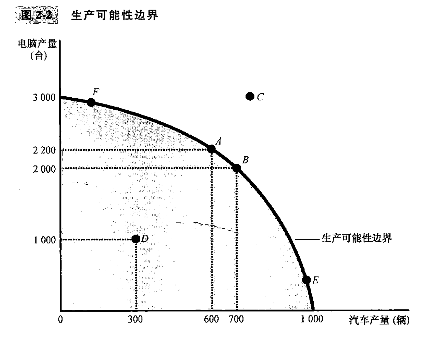 生产可能性边界主要描述了生产的边际效益关系,用来推导和展开后面的比较优势以及机会成本
