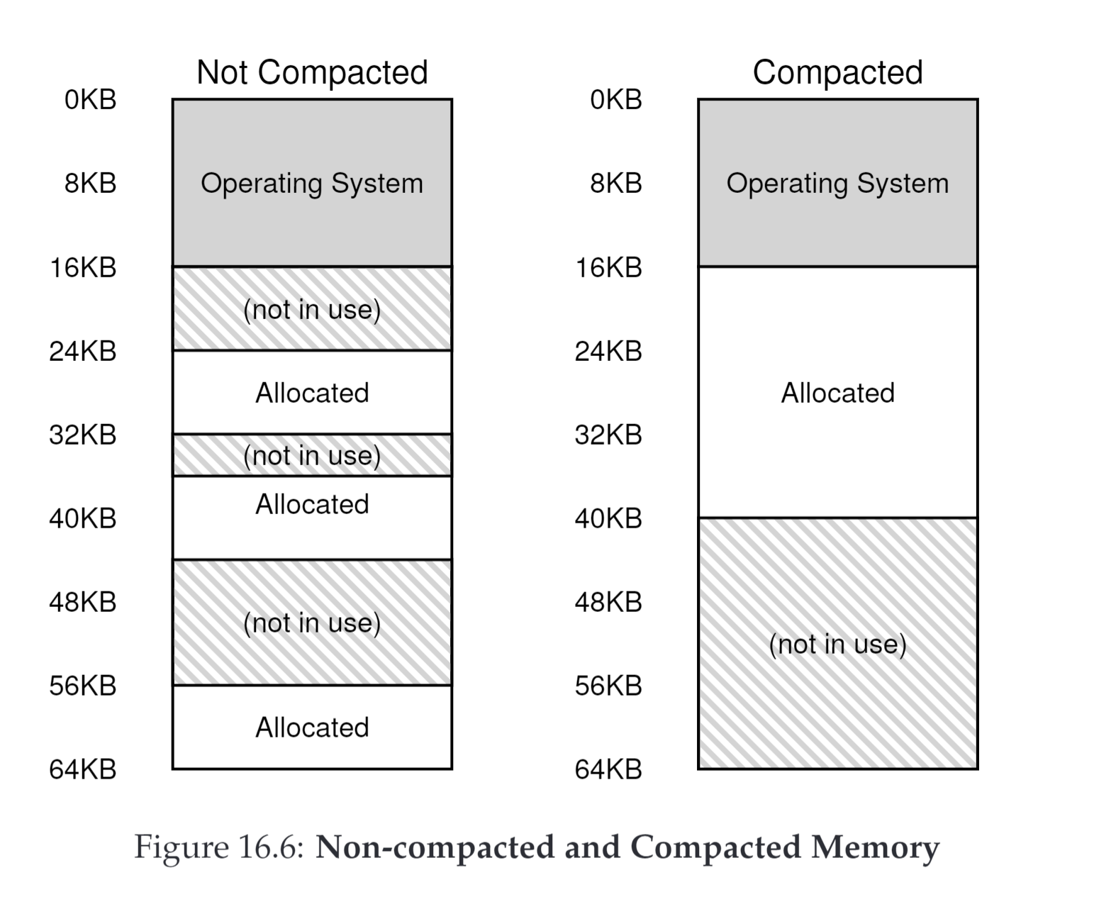 下一章介绍的是空闲内存的管理,会进一步解决这个内存压缩的问题