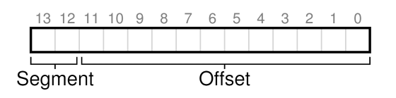 这个表中多了一个max4K,这个需要注意一下,这个表示了端的最大偏移大小,这个值不需要额外的寄存器保存,因为在我们的显示标记表达法下,这个值是显而易见的固定值——在14位的机器中,前2位被使用表达了端类型,剩下的12位表示偏移量,12位能表达的最大偏移量就是4k