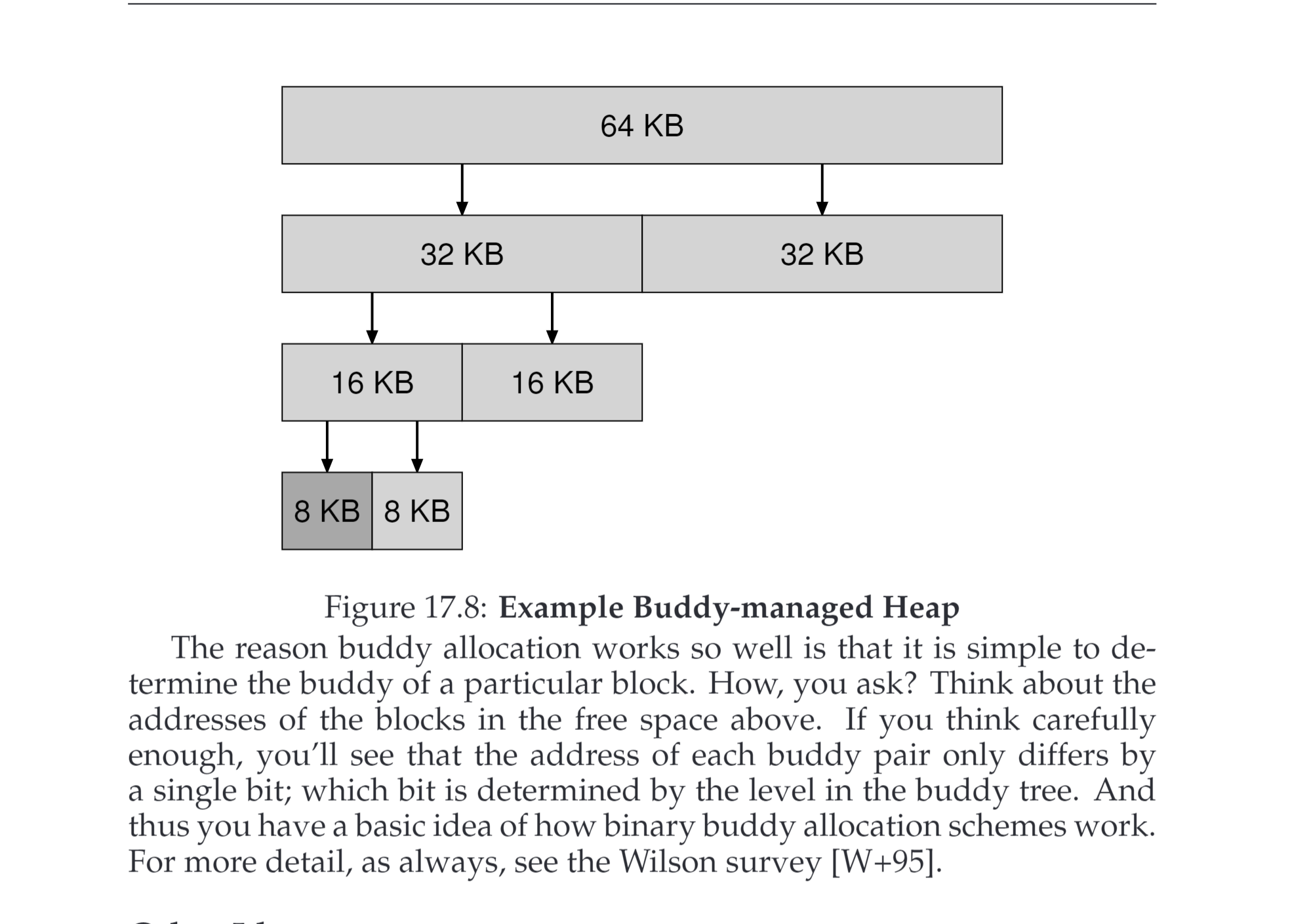 这个算法并不总是在列表的开头开始首次适应搜索,而是保留一个额外的指针,指向列表中最后一次查找的位置。这个想法是在整个列表中更均匀地分布对自由空间的搜索,从而避免列表开头的分裂。这种方法的性能与首次匹配非常相似,因为再次避免了穷举搜索。